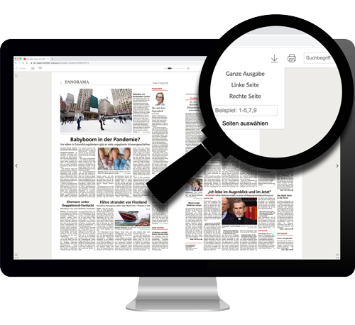 Suchen Sie innerhalb Ihrer Ausgabe nach Schlagwörtern und drucken Sie interessante Seiten aus. Sie können zudem die ganze Ausgabe oder auch nur einzelne Seiten herunterladen und auf Ihrem PC speichern.